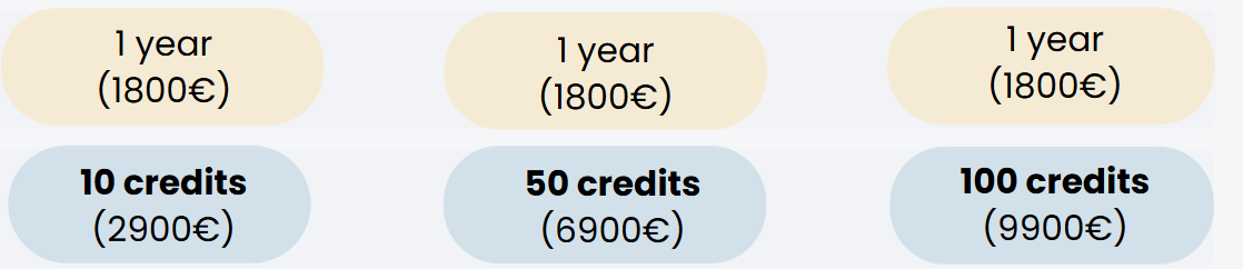 – 25% de remise sur les packs événements (NB : les crédits non consommés sont reportables une fois si pas tous consommés en fin d’année 1)